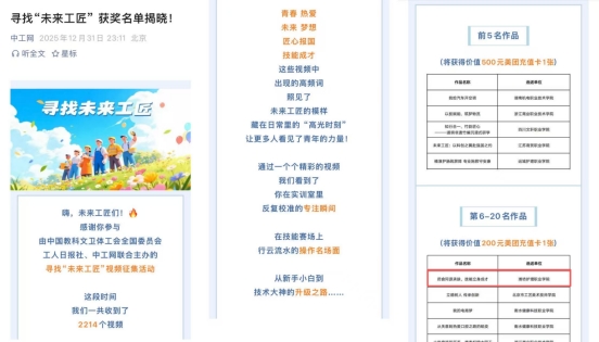 从选题构思、脚本撰写,到实地拍摄、精细剪辑,从理论内容的反复推敲,到技能演示的分毫校准,参赛学子们秉持精益求精的工匠精神,打磨每一个创作细节。视频作品不仅展现出我院学子过硬的专业本领,更充分彰显了学院高素质技术技能人才的培养成效,凸显了新时代青年工匠的蓬勃朝气与使命担当。